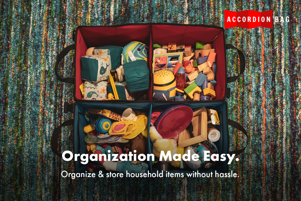 Organizing shouldn't be a hassle. Compared to plastic bins, Accordion Bag is equally sturdy but safer because of lack of small plastic bits from breaking. It can used to store household items or even children's toys.