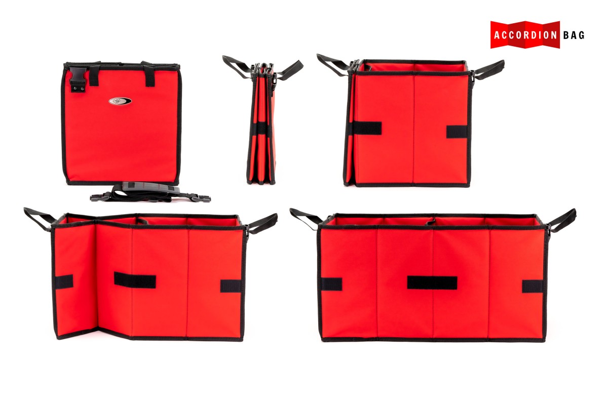 Accordion Bag is Versatile! It can be used as a storage for items like board games when you need to carry them to different places. It is sturdy enough to stand on its own, so it is also very useful as a storage bin or organizer for your car trunk. When you are done using, you can fold it up to save space.