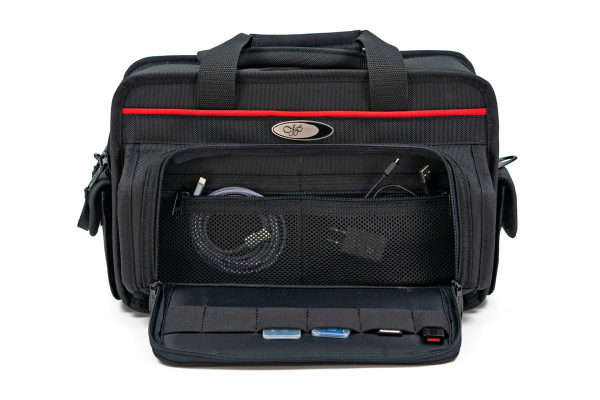 Safely store your accessories, memory cards, battery packs, chargers, cables and other miscellaneous items into these mesh pockets.