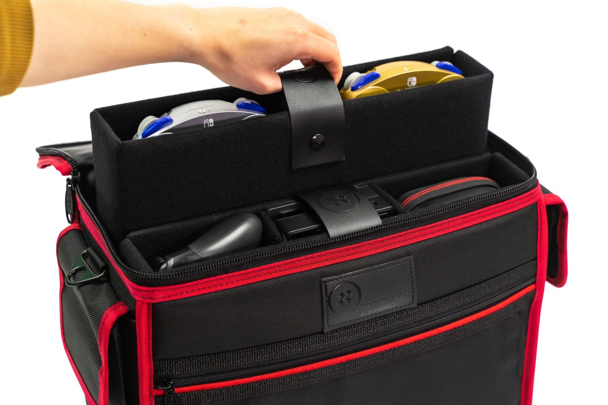 Tournament Duo comes with 2 "Boxes" that fits into the bag perfectly while being able to hold and protect your console and controllers. Together, it can carry your entire console setup with you just in a single bag while being able to protect from impacts and rain.