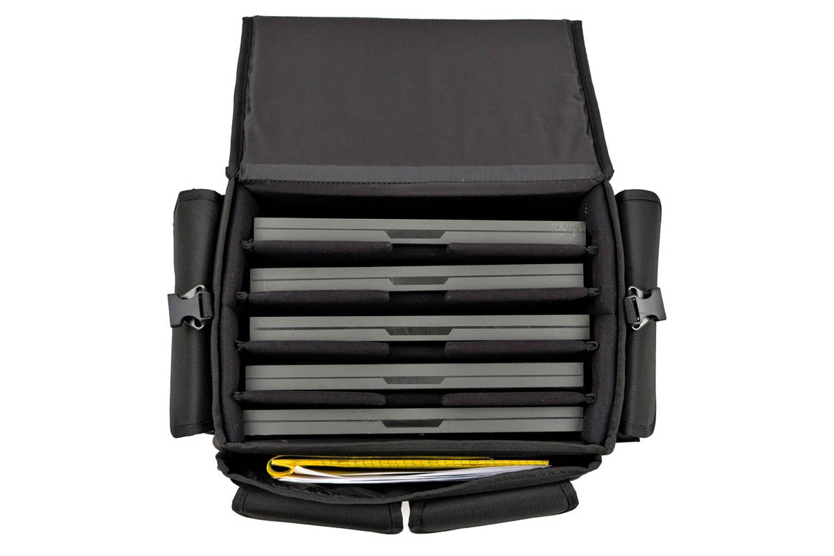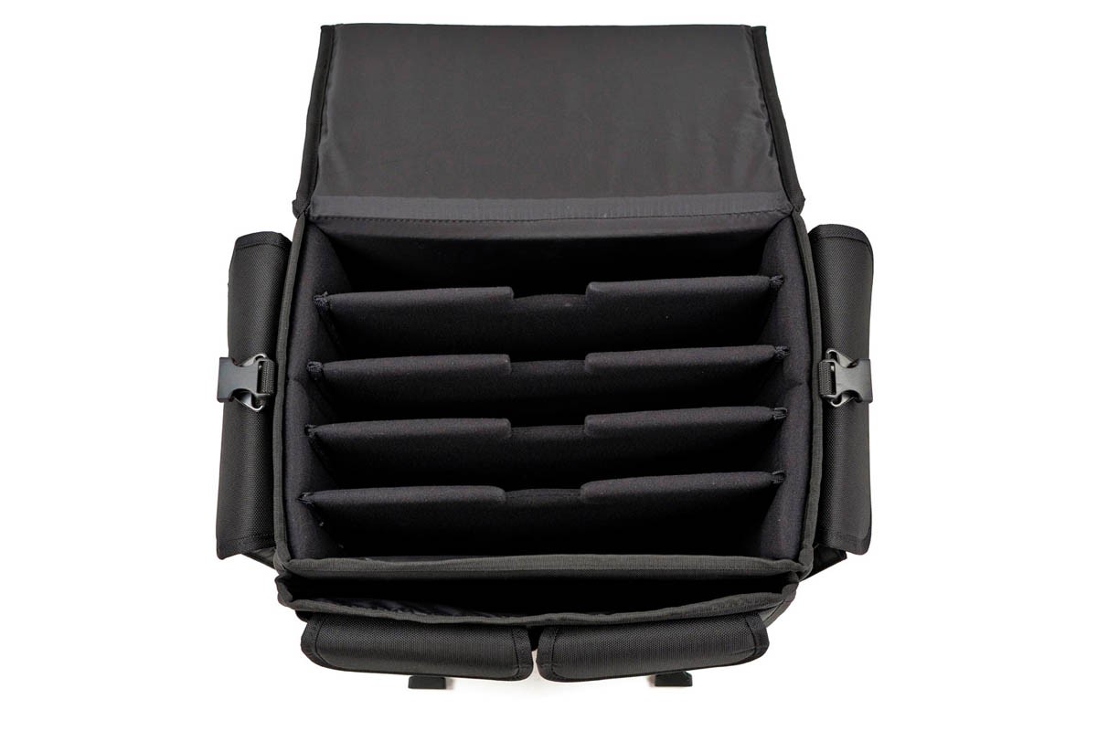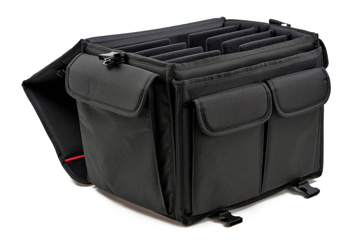 Bring the entire production on the go. MXLT-CB5 is a custom-built multi-laptop carry bag that allows you to carry up to 5 workstation-grade 15-inch laptops in a single bag. It features a very spacious laptop compartment that can accommodate up to 5 laptops with 1 ¾ inches of thickness, and you can even move the dividers freely to accommodate thicker laptops or even a small desktop computer. MXLT-CB5 is a safest, easiest, and robust way to transport your workstation laptops.