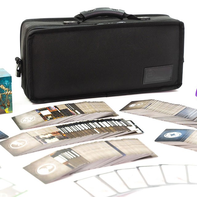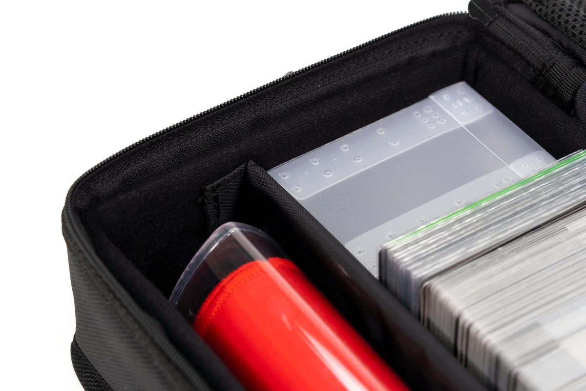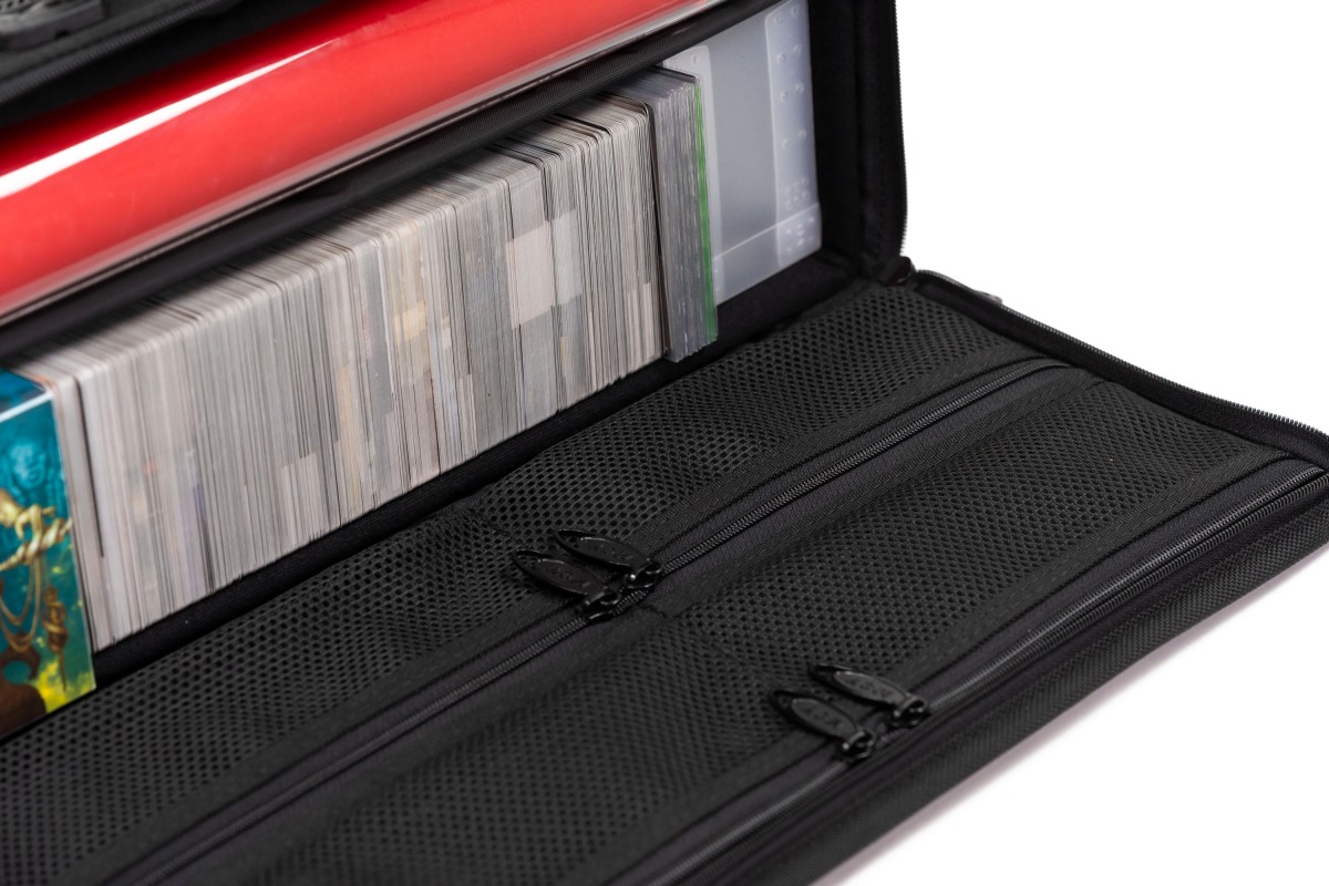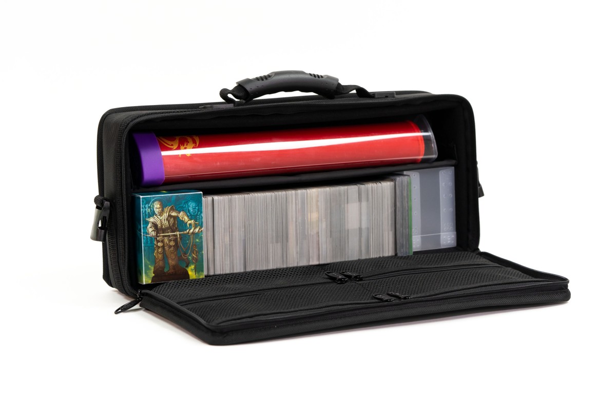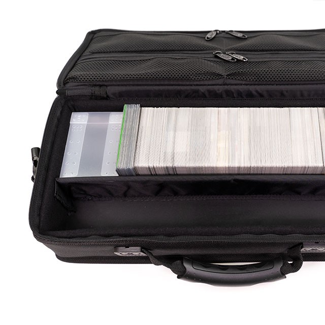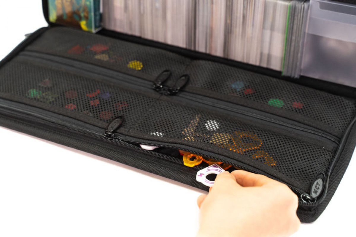 Your entire card collection in a single bag. Traveler Duo is 17.5 inches wide, which means it can hold A LOT of cards. It can easily store your whole game card collection and other accessories and bring them on the go. It also has 4 meshed pockets with zippers for storing smaller items such as tokens, dices, game chips and more. Bring your whole collection with ease to your next gaming event with Traveler Duo.